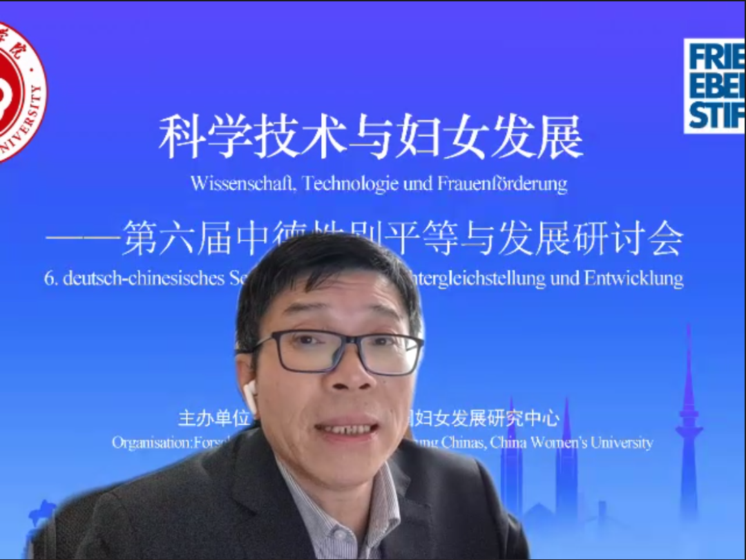 德国弗里德里希·艾伯特基金会(北京办事处)中国区首席代表赛巧先生参加会议并致辞。他指出,“妇女应该能够从经济和社会数字化发展的机会中获得更多的益处和发展机会”是德国联邦政府第三个性别平等报告中的核心内容。在疫情的影响之下,伴随着数字化的浪潮,工作方式发生了较大的变化,工作场所和家庭的边界变得模糊不清,劳动法的保护在一定程度上也被削弱。但在另一方面,科技发展却给我们提供一个机会塑造更加包容的劳动力市场,以及灵活的、数字化的工作方式。妇女可以从经济和社会数字化发展带来的机会中获得更多的益处。但是,目前妇女在科技领域就业仍然存在一些男女不平等现象,限制了妇女在科技领域的发展。中国和德国都为此做出了诸多努力,希望通过这次会议使中德学者分享经验与策略,进一步推动中德双方在促进性别平等和妇女发展方面的国际合作与学术交流。
