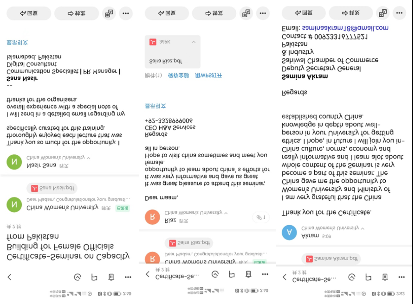 结业典礼上学员代表饱含情感地发言,认为课程与讲授精彩,策划与执行专业,培训卓有成效,收获满满。学员们也纷纷留言表示,通过培训对中国的历史文化、经济和社会等方面有了较全面的了解,对中国推动性别平等和促进妇女发展的政策和实践给予高度评价。