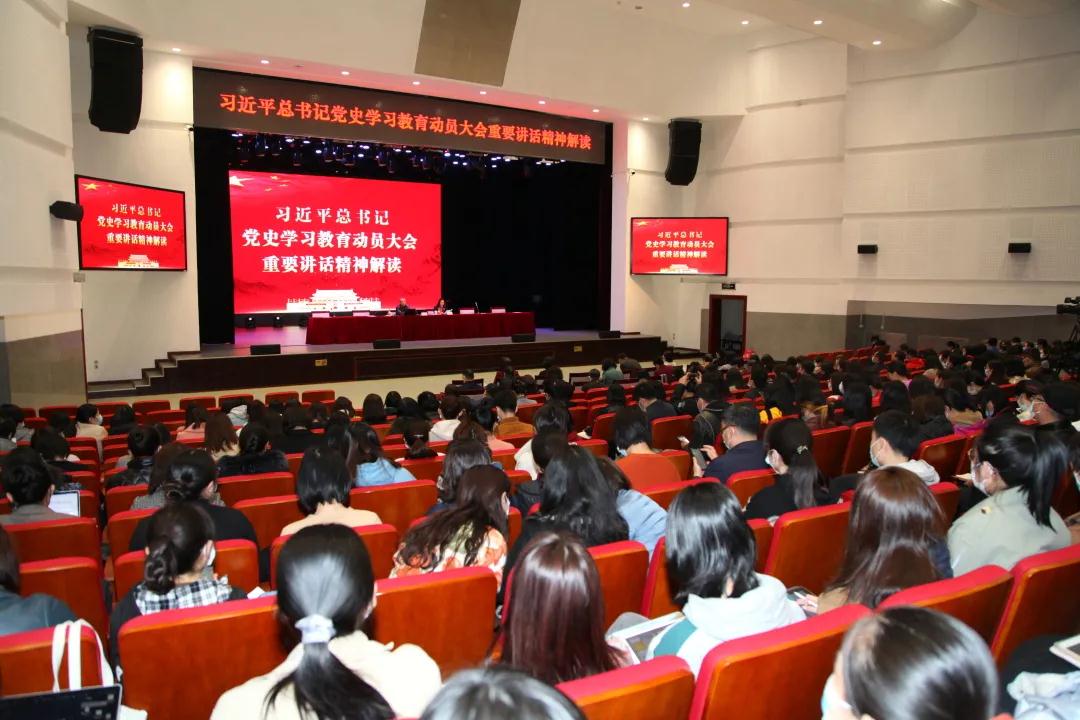 学校党委常委、副院长王京霞、王练、周应江出席动员会。学校党委副书记赵浩主持会议,并从指导思想、基本原则、工作进度、重点任务、组织保证等方面对学校党史学习教育实施方案做了说明。党委副书记、纪委书记任翠茹传达了全国妇联党史学习教育动员会精神。