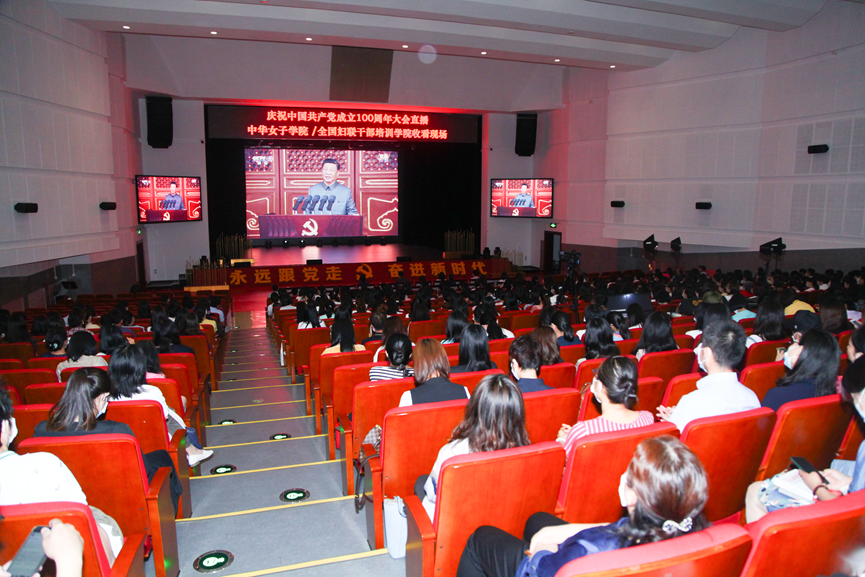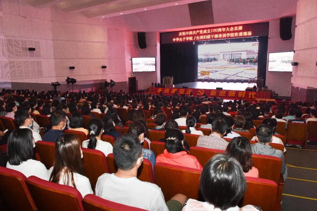 庆祝中国共产党成立100周年大会于7月1日上午8时在北京天安门广场隆重举行。中共中央总书记、国家主席、中央军委主席习近平发表重要讲话。中华女子学院/全国妇联干部培训学院全体党员师生集体收看了庆祝中国共产党成立100周年大会直播。