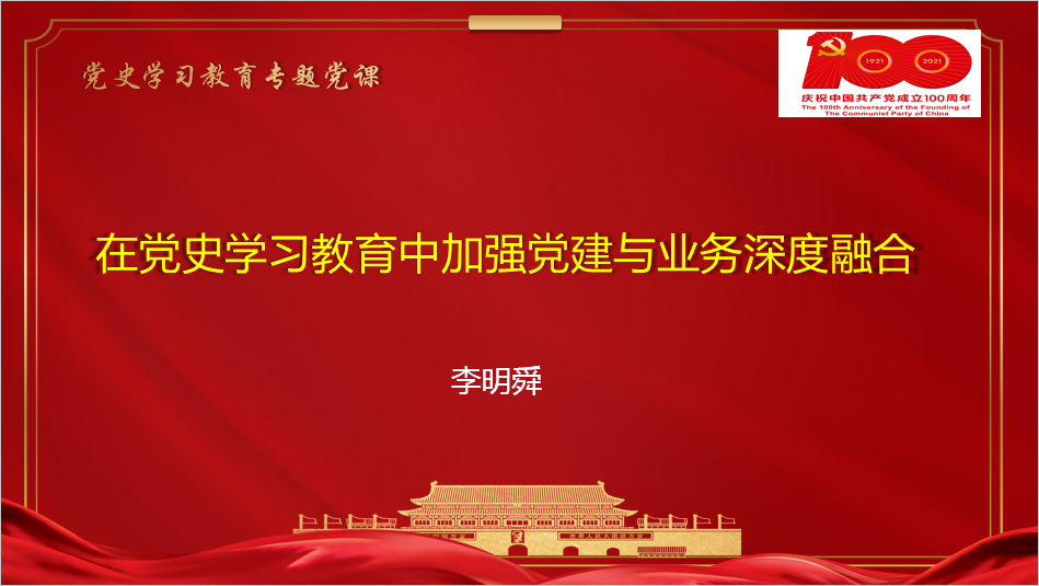 李明舜带领大家梳理了习近平总书记关于党建与业务深度融合的重要论述,并重点学习了习近平总书记在中央和国家机关党的建设工作会议、党史学习教育动员大会上的重要讲话精神,强调只有全面贯彻落实习近平总书记的要求,围绕中心、建设队伍、服务群众,推动党建和业务深度融合,党建工作才能找准定位。