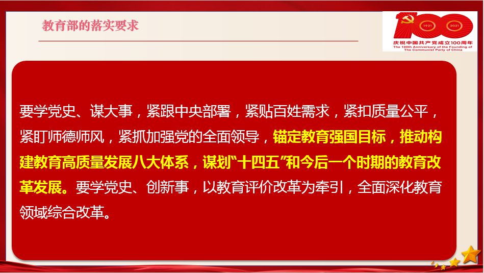 谈到贯彻落实教育部党史学习教育动员会精神,李明舜提出,要严格落实党史学习教育各项工作安排,切实做到学党史、干实事,学党史、解难事,学党史、谋大事,学党史、创新事,学党史、长本事,引导广大干部提升本领素质,增强“四个意识”、坚定“四个自信”、做到“两个维护”,不断提高政治判断力、政治领悟力、政治执行力。