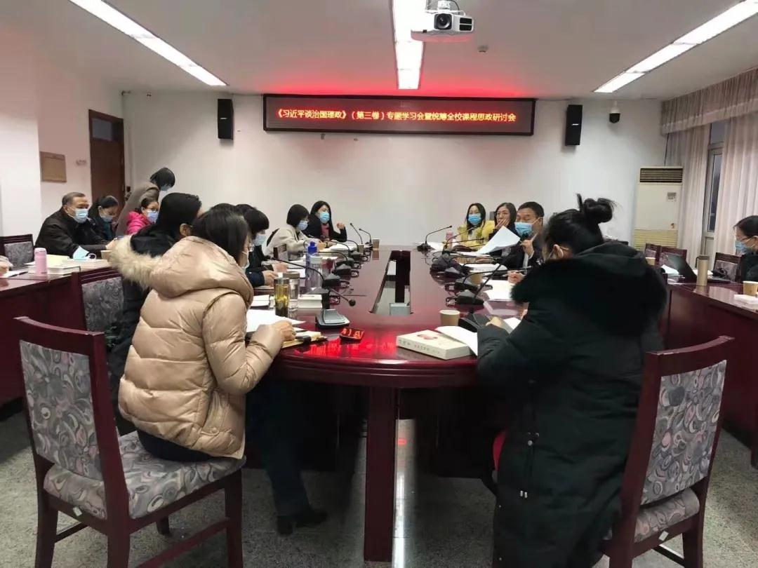 为了深入学习习近平新时代中国特色社会主义思想,特别是习近平法治思想,加强立德树人,推进全校思政课程和课程思政同向同行,2020年12月24日思政部联合法学院召开《习近平谈治国理政》(第三卷)专题学习会暨统筹全校课程思政研讨会。学校党委书记李明舜、副院长周应江出席会议。