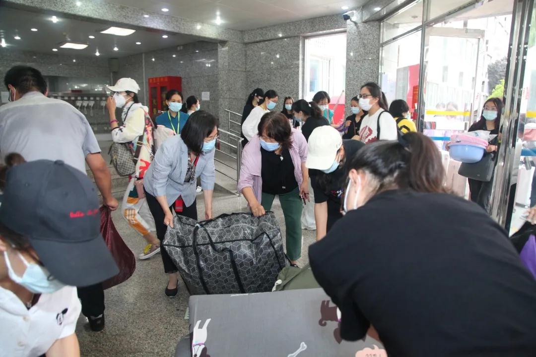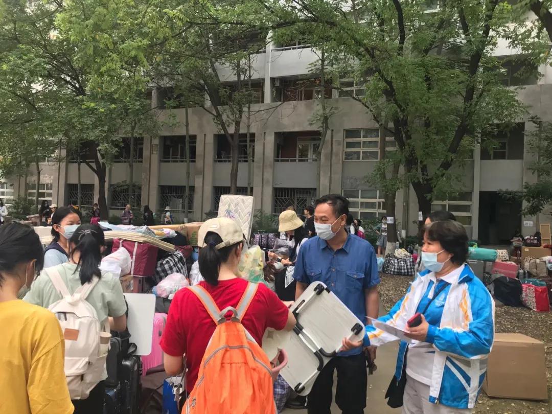 9月6日,北校区1126名学生回迁校本部。党委书记李明舜、院长刘利群、党委副书记兼纪委书记任翠茹分别在北校区、校本部指导回迁工作、亲自参与搬运行李,到宿舍慰问学生,提醒同学们做好疫情防控。学生工作部(处)、后勤管理处,保卫部(处)以及各院系部分师生参与了回迁工作