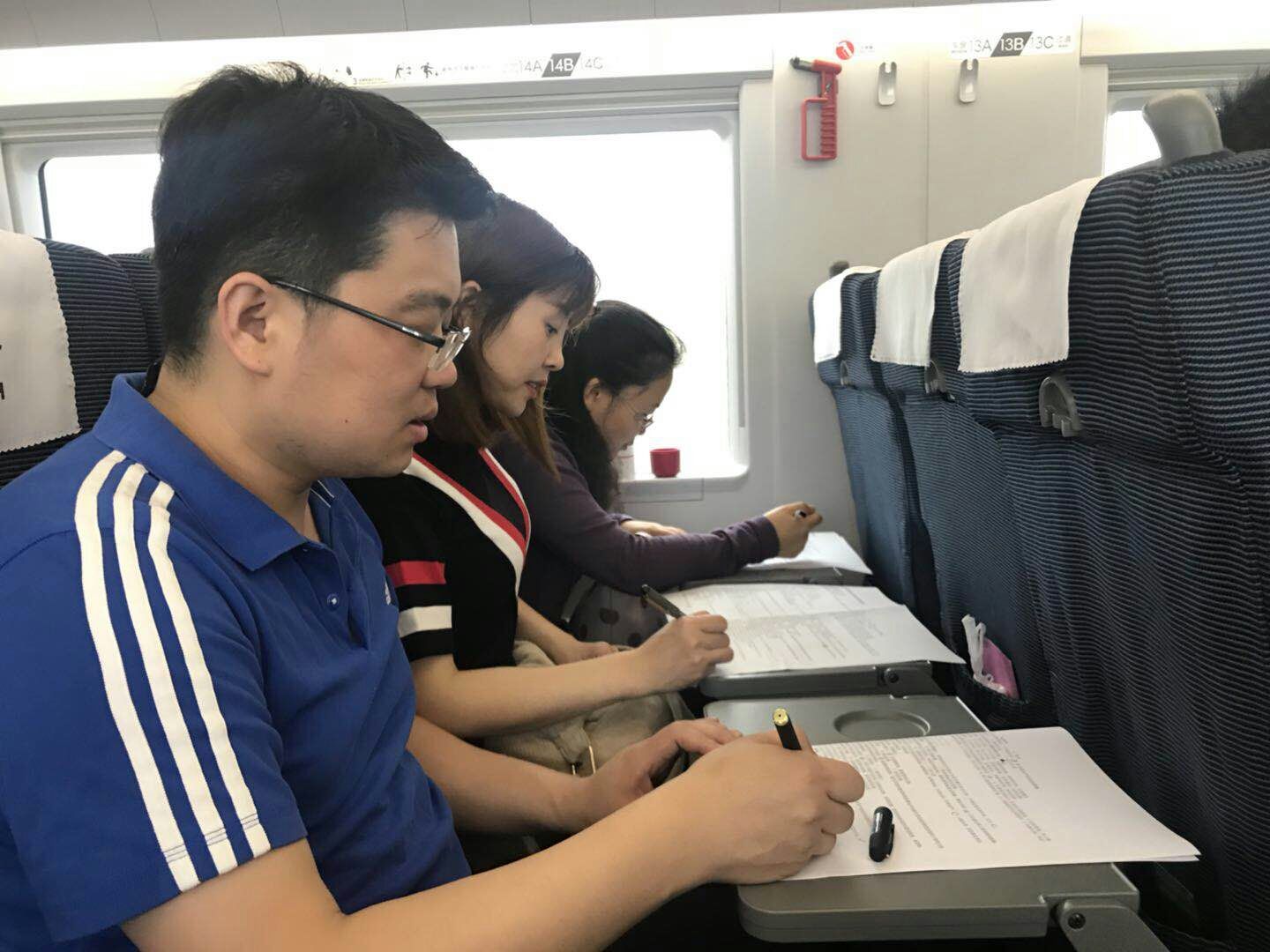 2018年5月11日,教务质监党支部党员及入党积极分子共赴保定开展“走进雄安感受新时代,不忘初心重温党史”主题党日活动。 在去往保定的高铁上,支部委员在全部学习完成“党支部书记网络培训班”的基础上,带领同志们开展了党的基本知识应知应会答题活动:我们知道了“三会”是哪“三会”,那“三会一课”的召开时间分别又是什么?预备党员什么情况下可以延长预备期?……面对考题,同志们主动发问,不仅仅满足于选出正确答案,还刨根问底,拓展相关知识,开启了一段收获满满的旅程。