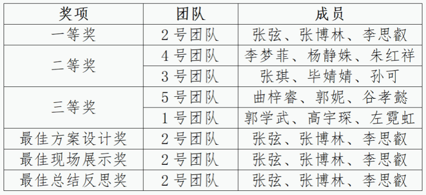 经过激烈角逐,二号团队(成员:张弦、张博林、李思叡)凭借扎实的方案设计和出色的现场发挥荣获一等奖,其余队伍分获二、三等奖,评委推选了3位表现优异的选手(高宇琛、李思叡、张博林)代表学校参加北京市第三届管理岗位青年教职工职业能力竞赛。