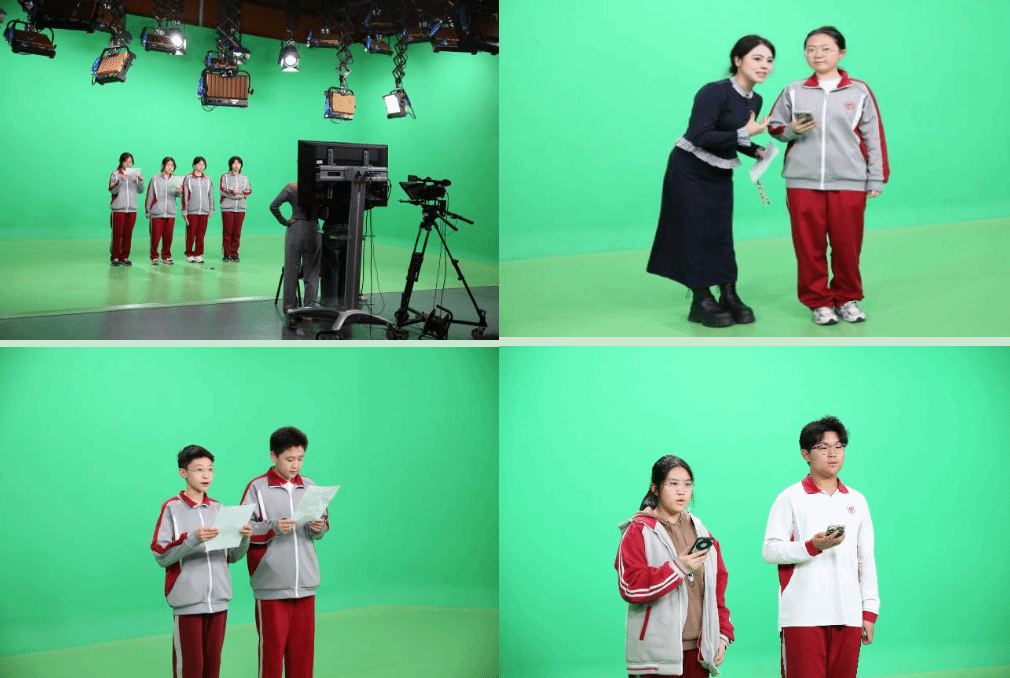 “育慧金声”小主播训练营在教务部副部长霍烺白、文化传播与艺术学院播音与主持艺术专业副教授周子云和王天一老师的指导下开展。在播音专业学生“大手牵小手”的带领下,中学生分组进入星空演播厅与绿幕演播厅体验新闻播音与新媒体主持两类场景。体验过程中,同学们认真学习发音、仪态、镜头感等主持基本素养,并逐一登台录制,现场气氛活跃,笑语不断。