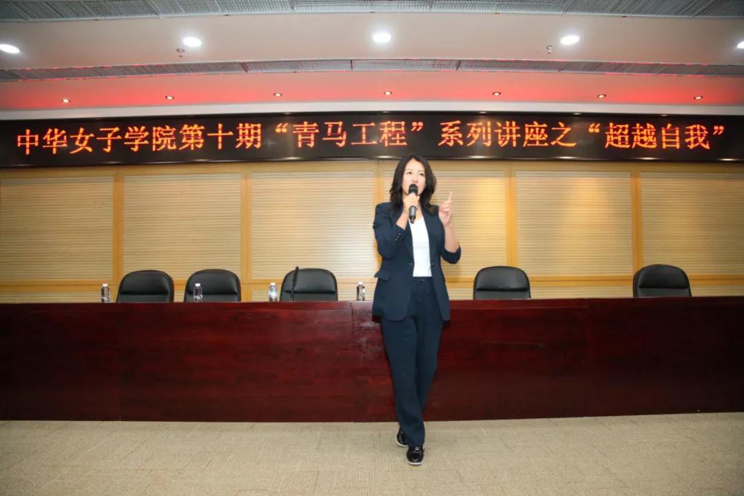 10月16日,冬奥会短道速滑世界冠军、中华女子学院教师杨扬为学校第十期“青马工程”高级班做主题为“超越自我”的讲座。讲座由校团委书记郑雷主持。