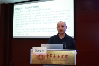 在“妇联组织与妇女工作创新发展”论坛中,中华女子学院社会工作学院陈伟杰副教授、黑龙江省妇女研究所王茜助理研究员、中华女子学院妇女发展学院刘子一讲师、河北经贸大学马克思主义学院尼莎讲师、中华女子学院妇女发展学院李慧波讲师分别作了主题报告。中华女子学院妇女发展学院副院长王向梅教授主持了该主题论坛。中华女子学院韩贺南教授与中华女子学院马克思主义学院王涛教授参与该论坛的与谈环节。